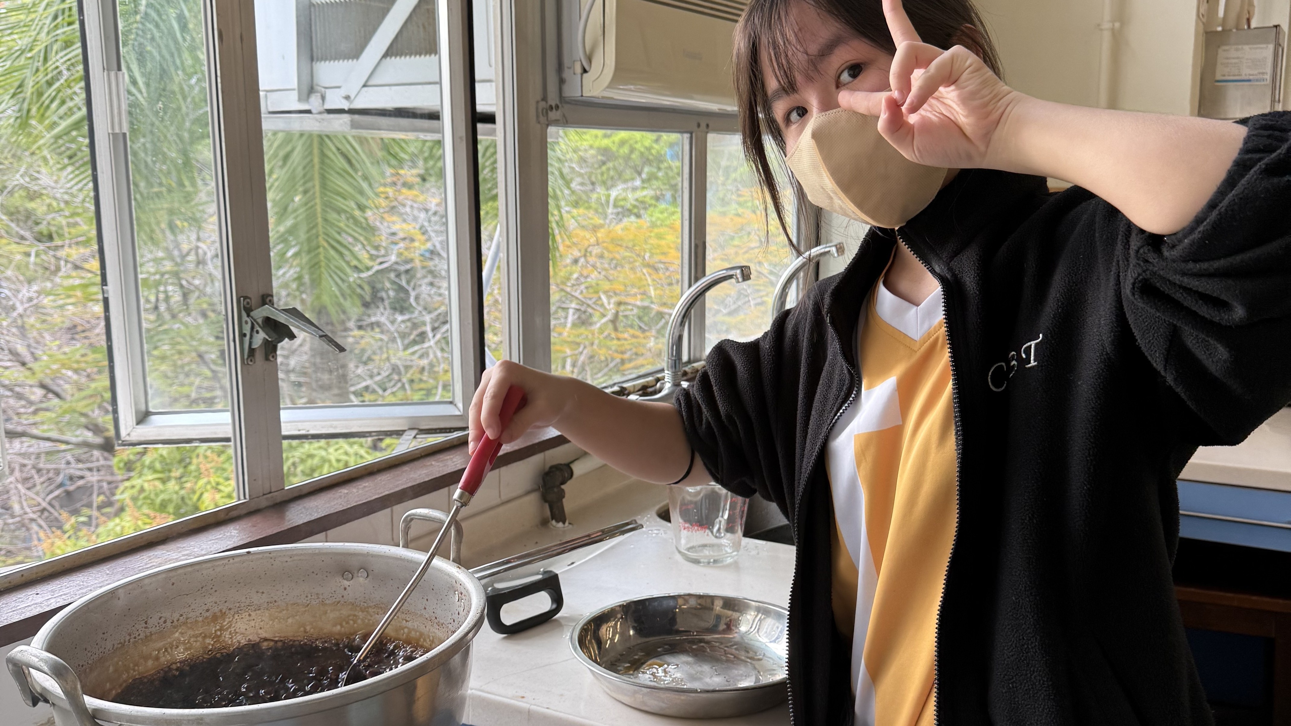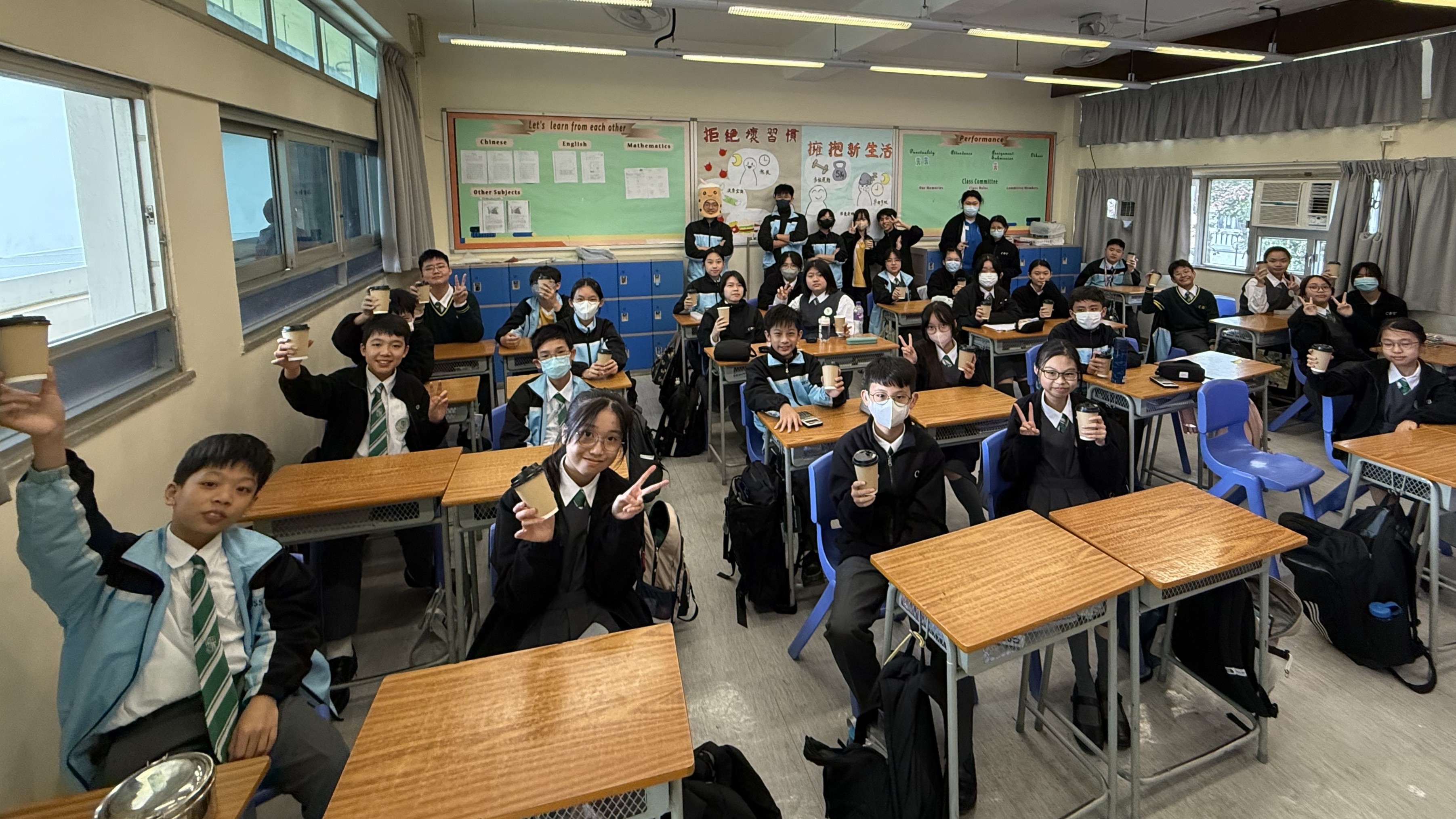 In the chilly weather, the Form 1 students really enjoyed the hot Ovaltine prepared by the committee members.