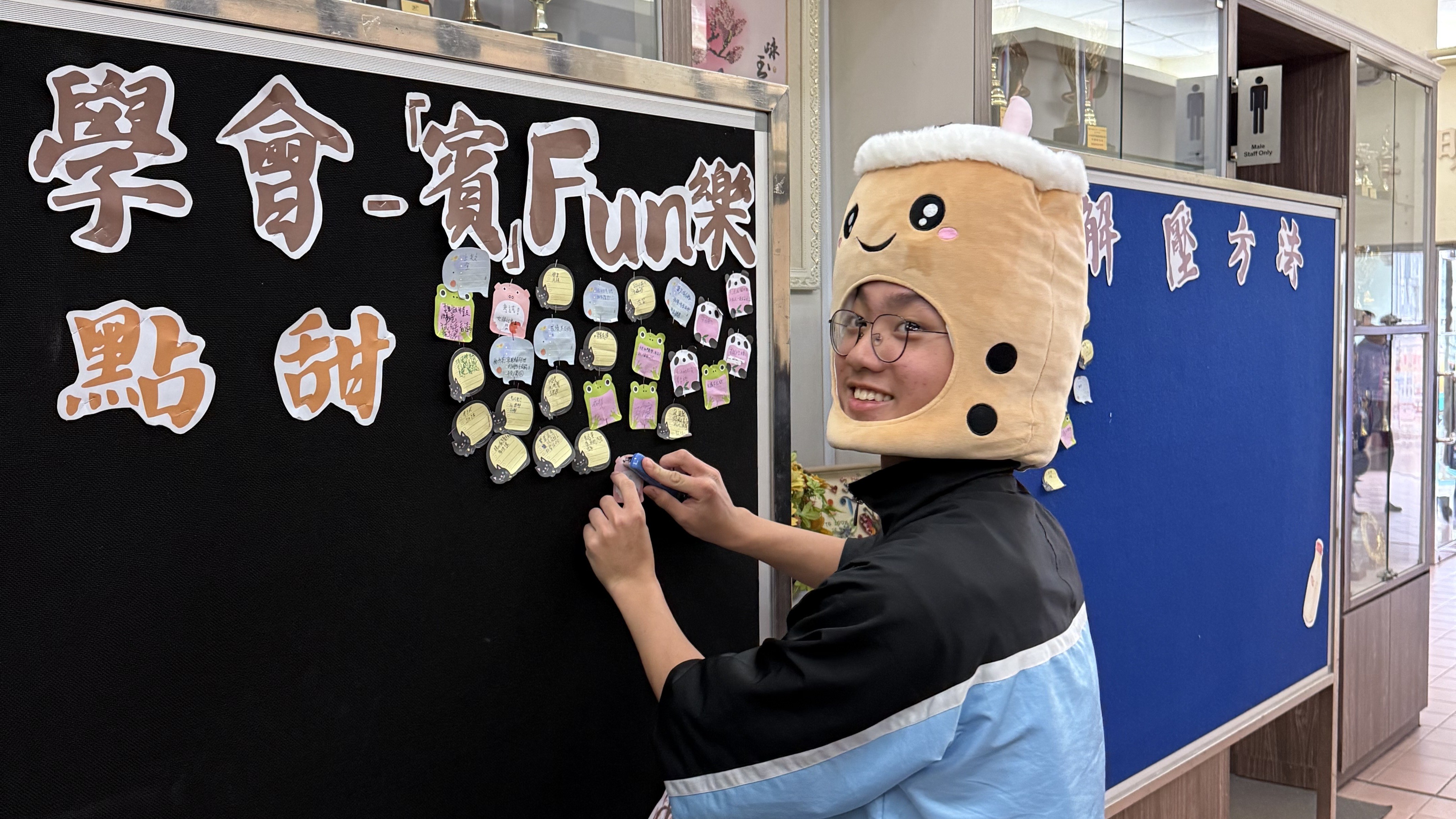 The activity was divided into two sessions: during lunch and after school. At lunch, the committee members went to the Form 1 classrooms to invite students to write down stress-relief methods and, in return, receive a cup of hot Ovaltine made by the committee members. After school, two notice boards were set up at the school gates: the first was for stress, where students could write down their post-exam stress, and the second was for stress-relief, where students and committee members wrote down their own relaxation tips. Upon completing these tasks, students received a drink (including brown sugar bubble milk tea, various flower teas, and hot Ovaltine), offering them a little sweetness and comfort during the post-exam period. The committee members were deeply moved to see so many students enthusiastically taking part and hoped that students could relax a bit during the post-exam period.