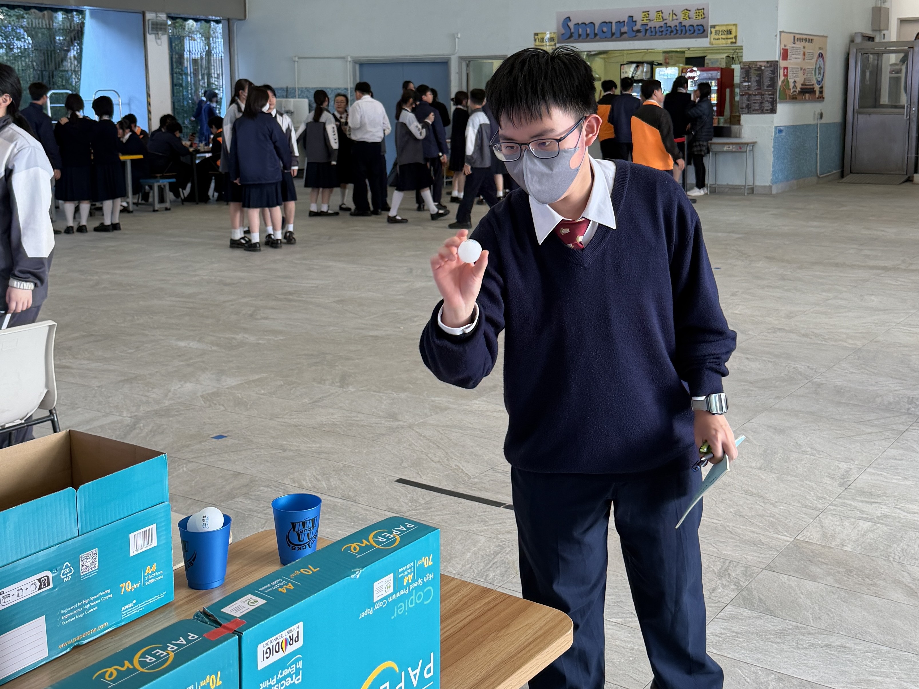 In Activity 2, each student received four table tennis balls and attempted to toss them into ten small cups, one ball at a time. This activity allowed students to experience challenge, success, and disappointment in a fun setting. When initial attempts were unsuccessful, students were encouraged to cheer themselves on, adjust their mindset, and try again, learning how to manage emotions through experience.