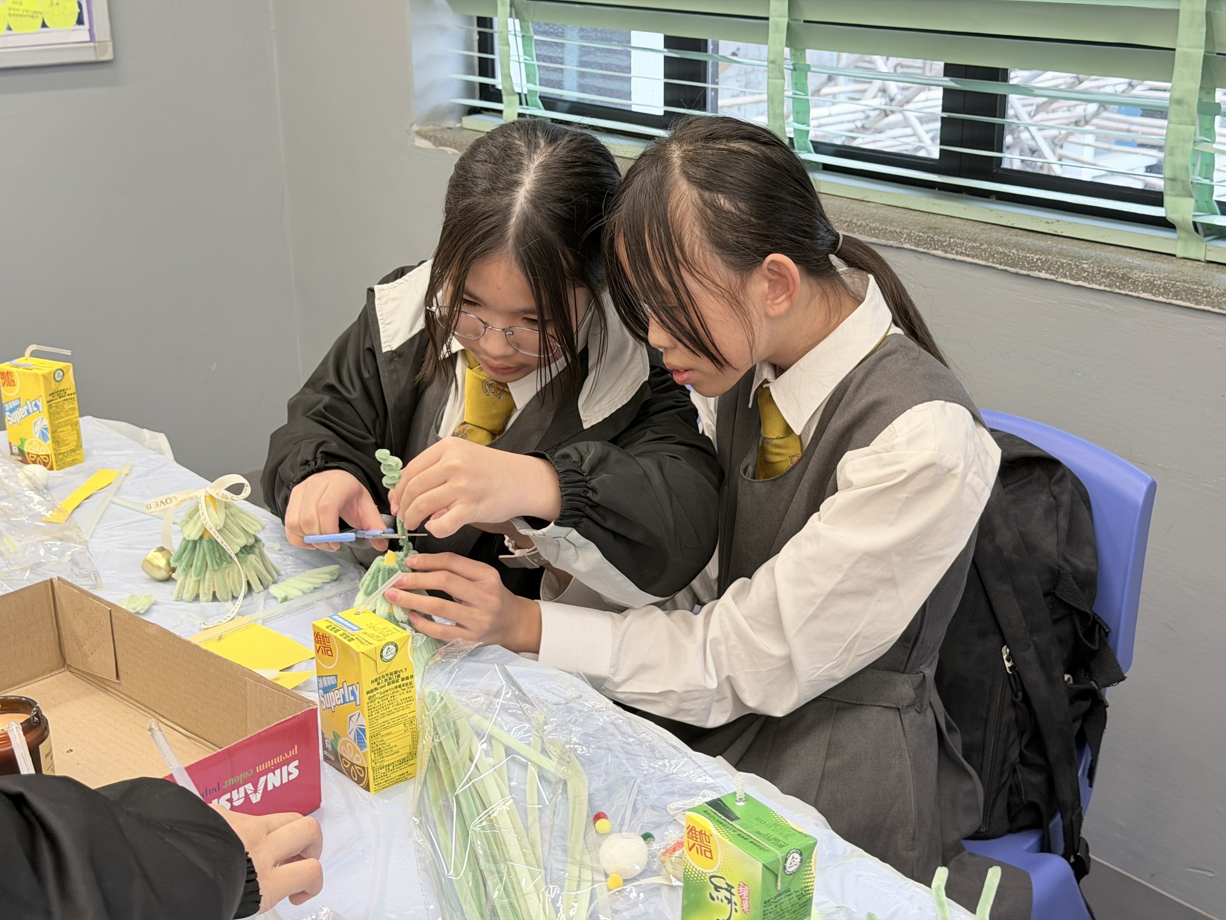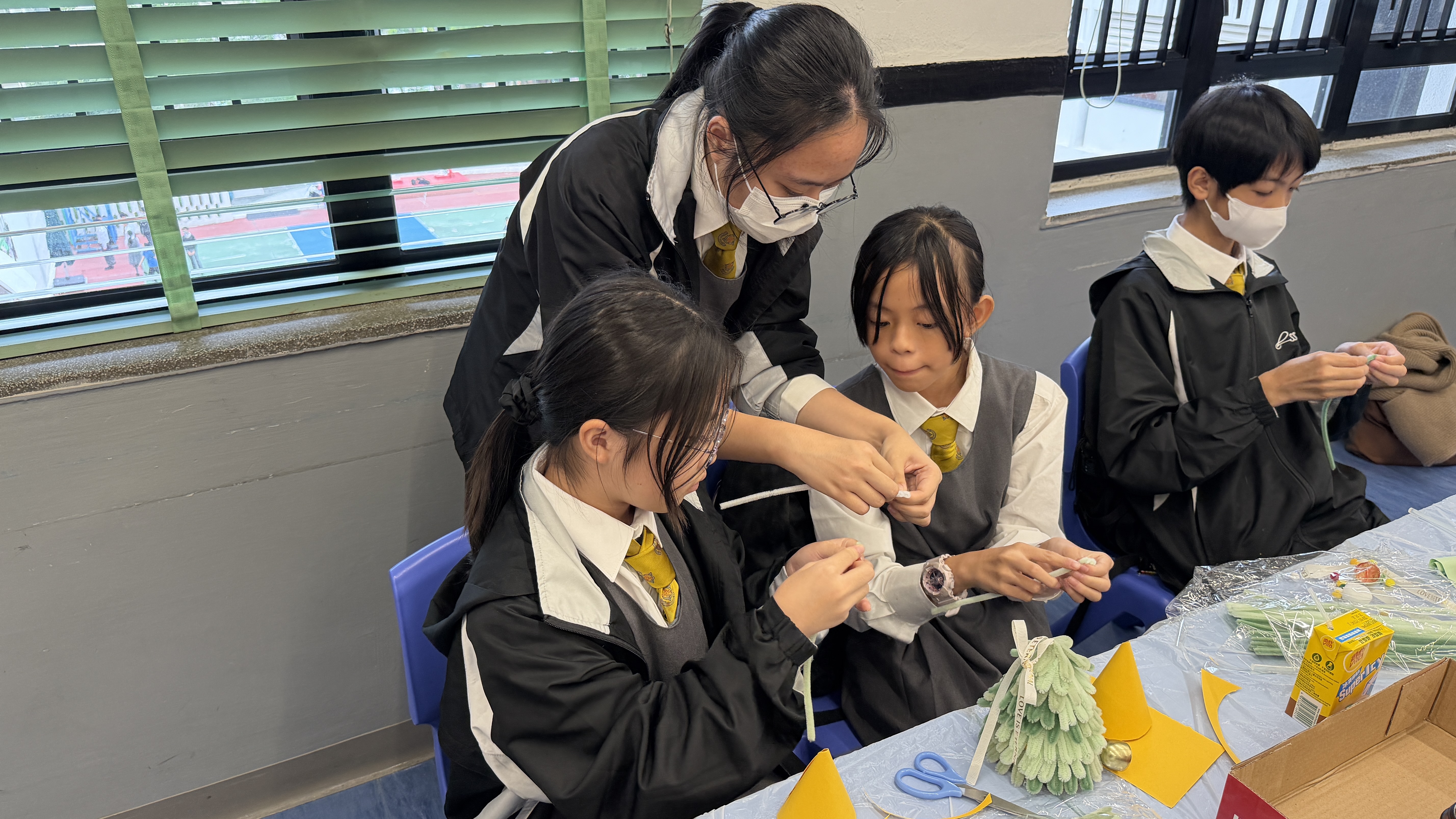 As they made Christmas crafts, the students were thoroughly focused and eager to help each other.